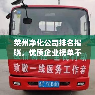 随着社会的快速发展,空气净化行业逐渐崭露头角,成为关乎人们生活质量的重要产业之一,在众多净化公司中,莱州净化公司以其卓越的技术实力和服务品质脱颖而出,赢得了广大客户的信赖和赞誉,本文将为您介绍莱州净化公司的排名及其相关情况。