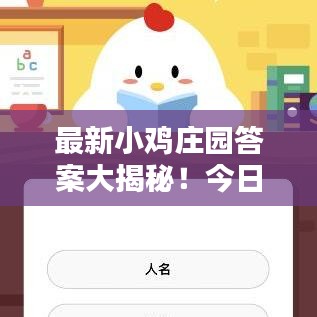 随着科技的进步和互联网的普及,各类线上互动游戏应运而生,小鸡庄园”以其独特的玩法和趣味性吸引了众多玩家的目光,每天,无数玩家沉浸在“小鸡庄园”的世界,挑战任务,解答谜题,享受游戏的乐趣,而“最新小鸡庄园今日答案”更是成为众多玩家关注的焦点,本文将围绕这一主题展开,带领读者了解“小鸡庄园”的最新动态和今日答案。
